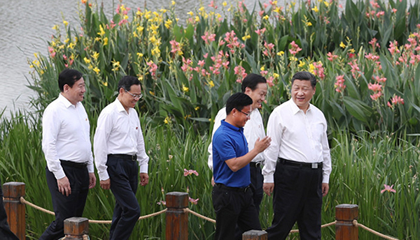無(wú)論走到哪里,他都心系生態(tài)環(huán)境保護(hù)。在云南,他跟當(dāng)?shù)厥∥瘯洝⑹¢L(zhǎng)在洱海邊合影。他說(shuō):“希望多少年后再照一張照片,那時(shí)候水比現(xiàn)在更干凈、更清澈,如果不干凈了,我要找你們。”在陜西,他強(qiáng)調(diào)要盡可能減少對(duì)自然環(huán)境的損害。