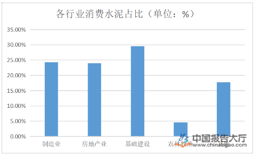 水泥消費(fèi)幾乎出現(xiàn)在所有20個(gè)國民經(jīng)濟(jì)行業(yè)門類中,任何一個(gè)門類的投資活動(dòng),都有水泥的身影。這其中,與水泥消費(fèi)關(guān)系最密切的有六大門類,分別是制造業(yè),房地產(chǎn)業(yè),水利、環(huán)境和公共設(shè)施管理業(yè),交通運(yùn)輸、倉儲(chǔ)和郵政業(yè),農(nóng)、林、牧、漁業(yè),電力、熱力、燃?xì)饧八纳a(chǎn)和供應(yīng)業(yè)。