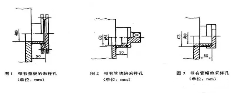 ①在選定的測定位置上開設采樣孔,采樣孔的內徑應不小于80mm,采樣孔管長應不大于50mm。不使用時應用蓋板、管堵或管帽封閉(如下圖所示)。當采樣孔僅用于采集氣態污染物時,其內徑應不小于40mm。