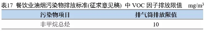 《餐飲業(yè)油煙污染物排放標準(征求意見稿)》中對于VOC的要求見下表。
