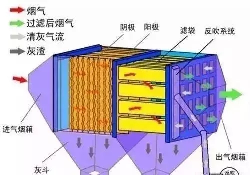 采用“前級(jí)電除塵器+后級(jí)袋式除塵器”的配置型式,首先由前電場(chǎng)捕集80%左右的粗粉塵,其余粉塵則由堆積在濾袋上的荷電粉餅層捕獲。